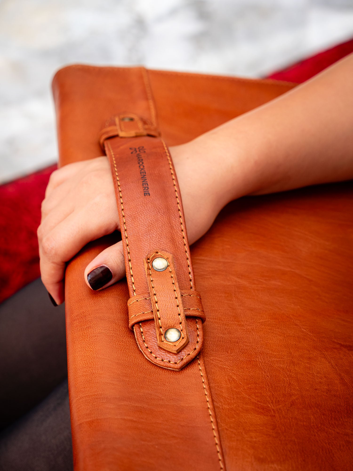 ARTISAN CRAFTSMANSHIP – Expertly crafted by Moroccan artisans using ancestral tanning techniques, blending tradition with contemporary elegance.